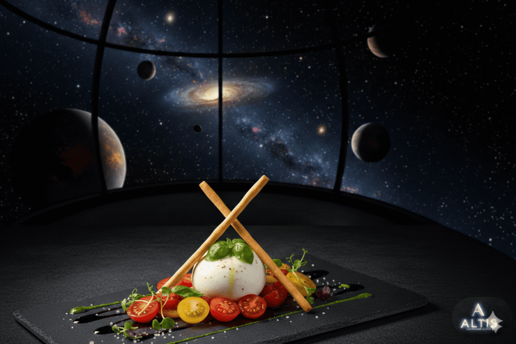 Ne vous fiez pas à son nom : c’est une explosion de saveurs. Un consommé de tomate clarifié d’une pureté absolue, entourant une burrata aérienne. Un minimalisme cosmique qui prouve que dans le vide, on trouve l’essentiel. Prix : 24 €