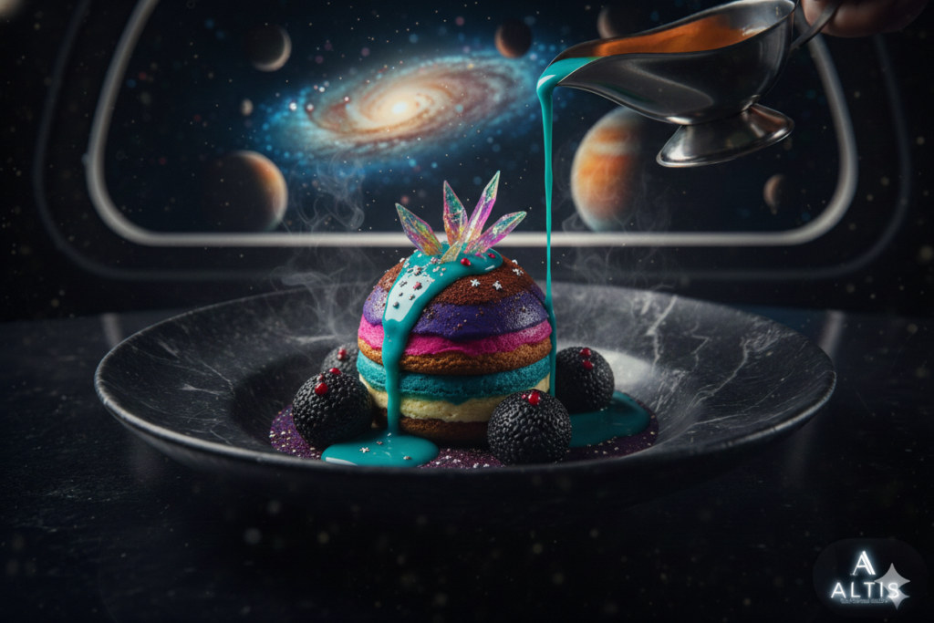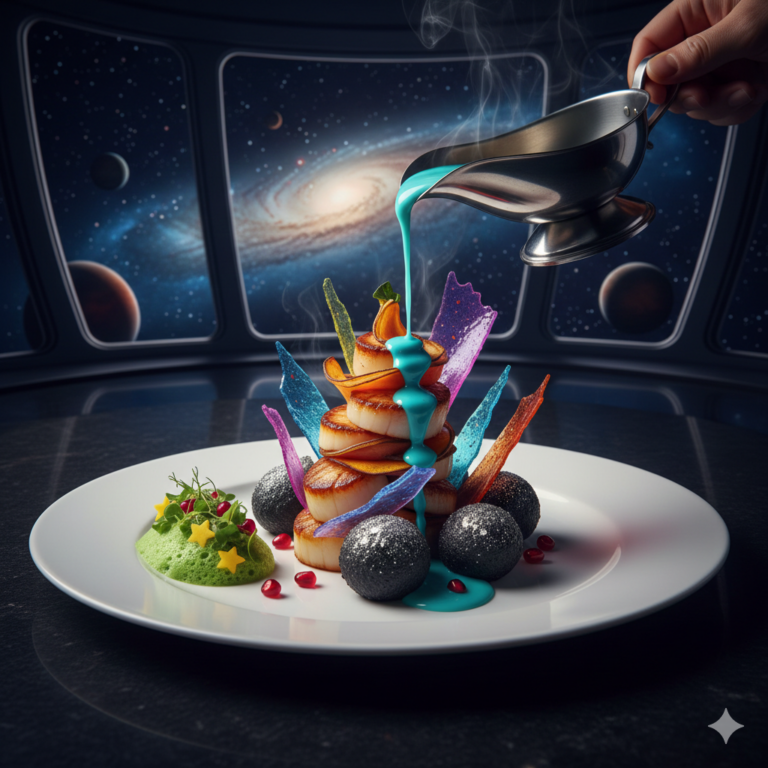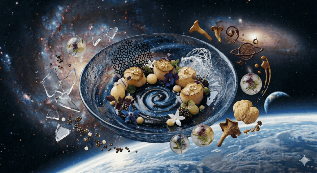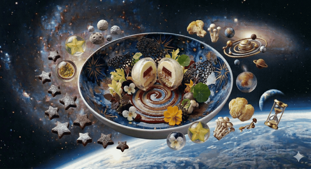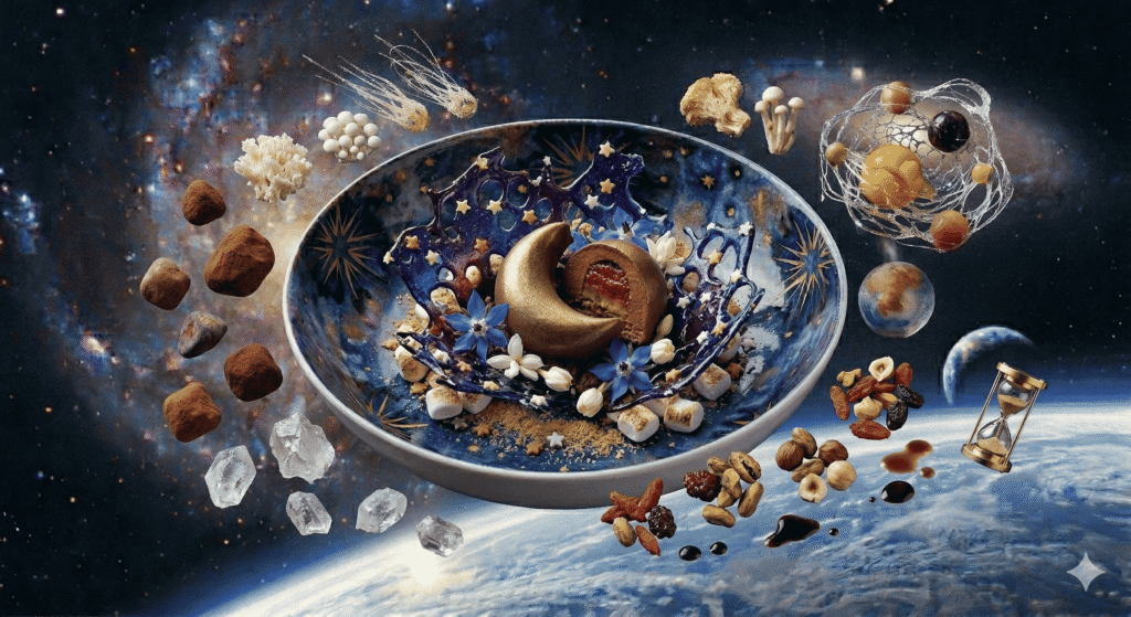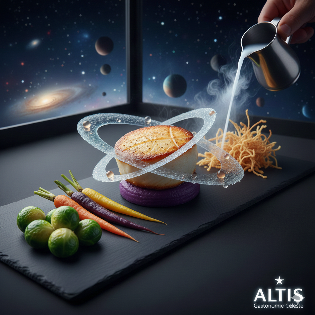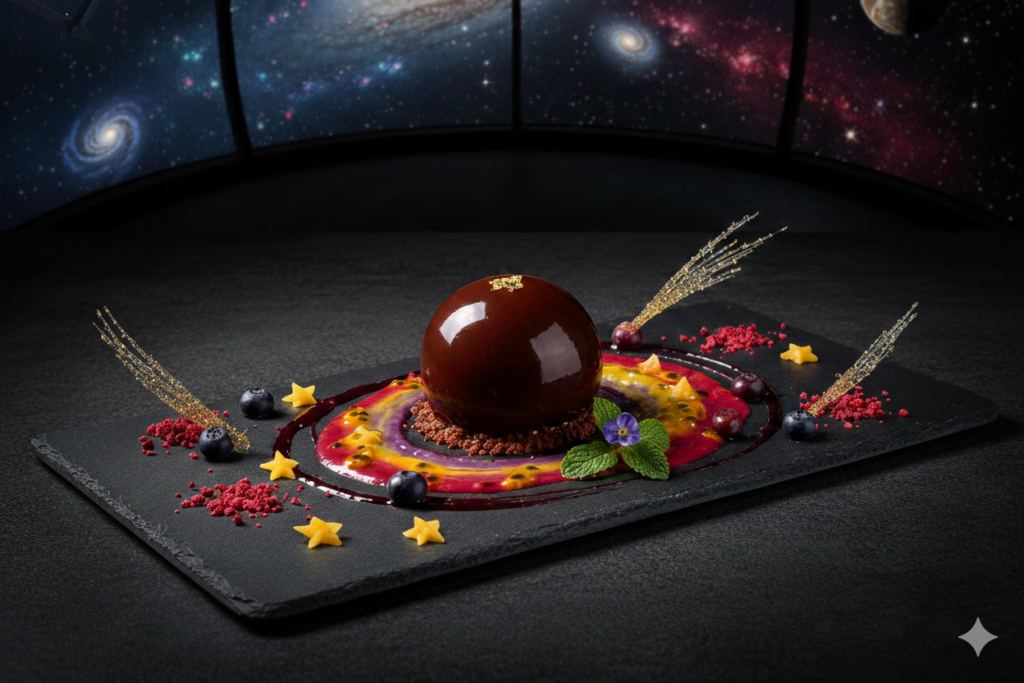 Un monument de la gastronomie terrienne revisité pour les voyageurs de l’infini. Mi-cuit à basse température, il s’accompagne d’un chutney de figues aux épices lointaines et d’un pain d’épices dont la recette semble venir d’une autre galaxie. Prix : 36 €